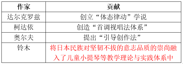 [单选题]( )的主要贡献在于:将日本民族对坚韧不拔的意志品质的崇尚融入了儿童小提琴等教学理论与实践体系中。