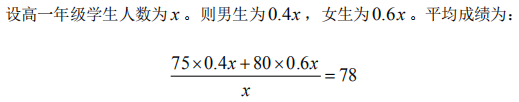 [单选题]某高校高一年级男生人数占该年级学生人数的40%。在一次考试中,男、女的平均分数分别为75和80。则这次考试高一年级学生平均分数为( )