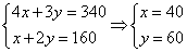 [单选题]现有长方形木板340张,正方形木板160张(如左图),这些木板刚好可以装配成若干竖式和横式的无盖箱子(如右图),则装配成竖式和横式箱子的个数为( )