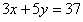 条件(2),,由于4x和6y均为偶数,不可能求和得到37,不充分.