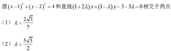 本题考查条件充分性的判断。 本题需要看条件(1)和条件(2)是否可以使圆和直线相较于两点成立。