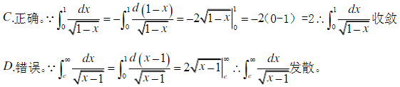 [单选题]下列广义积分中,收敛的是( )