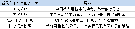 本题考核的是新民主主义革命的动力,相关知识解析及要点详见下表。