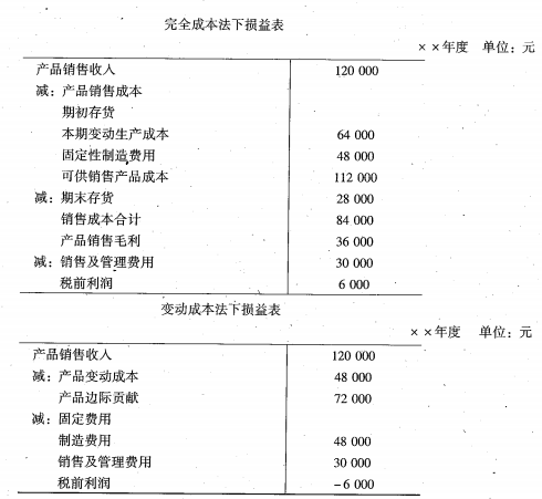 要求 :分别按完全成本法和变动成本法编制损益表