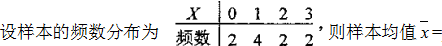 则样本均值=0×0.2+1×0.4+2×0.2+3×0.2=1.4