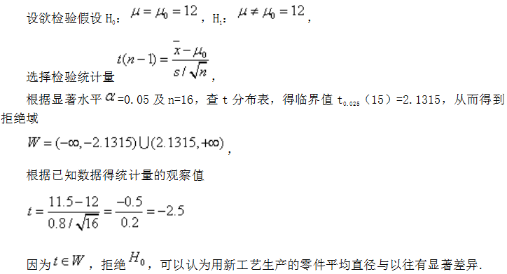 未知。现用一种新工艺生产此种零件,随机取出16个零件,测其直径,算得样本均值