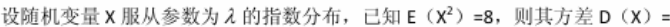 (1)指数分布:X~E(λ),则E(X)=1/λ、D(X)=1/λ²,λ>0