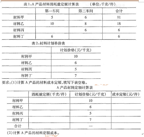 [简答题]某企业A产品生产工艺稳定,企业为了加强成本管理,采用定额成本法进行成本核算。A产品由两个车间连续加工,材料是陆续投料。企业根据相关的资料确定了A产品材料消耗量定额为41千克/件,A产品材料消耗量定额计算如表1所示,各种材料的计划价格如表2所示。2013年6月A产品实际产量为800件。