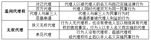 本题可从“滥用代理权”入手。滥用代理权与无权代理情形详见下表:
