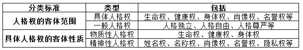 本题可从“精神性人格权”入手。人格权的分类详见下表: