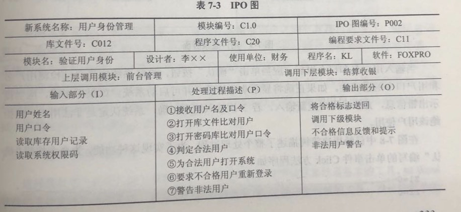 处理过程设计就是要对控制结构图中每一个模块内部的处理过程进行具体的描述。这种描述将成为以后编写处理程序的基础。每一个模块都可以看成是一个独立的子系统,都有自己的输入、加工处理、输出几部分。详细地描述这个处理逻辑可以使用“输入-处理-输出”图(Input Process Output,IPO图)。IPO图将为编制程序提供指导,所以也称为程序设计任务书。 如图