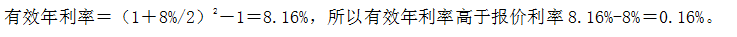 [单选题]一项600万元的借款,借款期3年,年利率为8%,若每半年复利一次,有效年利率会高出报价利率( )。