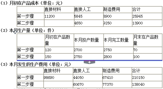原材料在第一步骤生产开工时一次投入,各个步骤加工成本类费用陆续发生;第一步骤和第二步骤月末在产品完工程度分别为本步骤的50%和40%。
