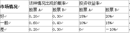 [综合题]已知A、B两个股票的投资收益率及其概率分布情况如下表所示: