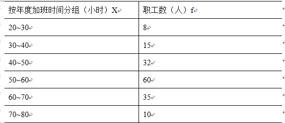 [简答题]某公司对该公司职工的年度加班时间和人数进行统计,得出的结论如下表