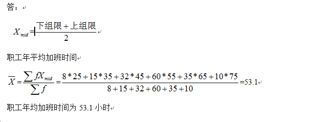 根据上表计算职工年均加班时间。(结果保留小数点后一位)