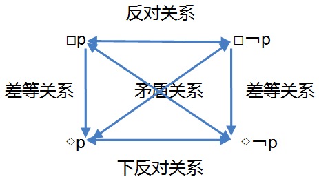 (3)必然P与可能非p具有矛盾关系,可能非p等值于并非必然p。