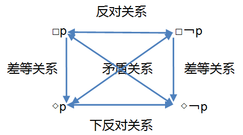 由□p“必然长江后浪推前浪”为真可知,□﹁p“必然不是长江后浪推前浪”为假,◇p“可能长江后浪推前浪”为真,◇﹁p“可能不是长江后浪推前浪”为假。