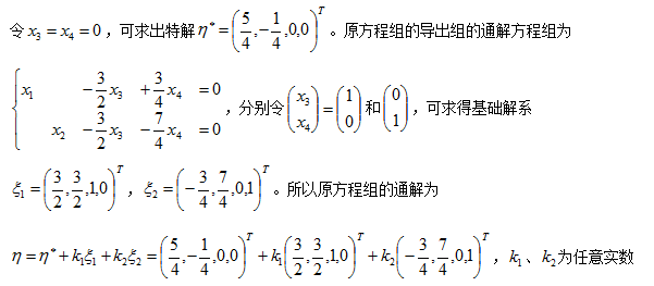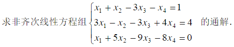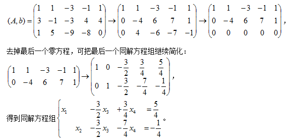 用初等行变换把方程组的增广矩阵化成简化行阶梯矩阵,得到同解方程组:
