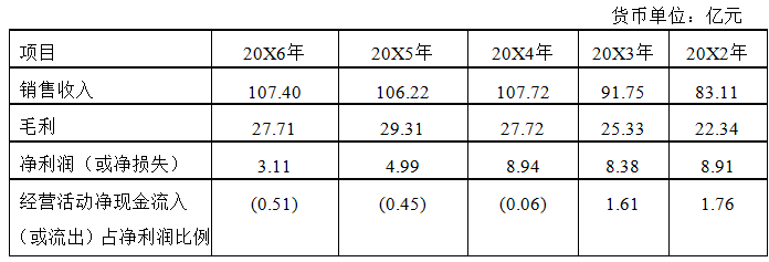 [综合题]一个盈利的企业会破产吗?一个企业发展能因现金流恶化而破产吗?回答是肯定的,甲公司就是一例。甲公司是一家经营玩具产品零售与批发的企业,其中30%对外出口。尽管公司总裁试图提高经营业绩,但在近期遇到了财务危机。20X6年11月,公司逾期未付银行借款达3900万元。20X6年财务报告披露公司已经无力偿还该年度到期的1300万元的抵押贷款。20X7年3月初,公司现金余额为零,在无法从主要供货商获得进货信用后,向法院申请破产保护。根据破产法,甲公司在法庭监护下经营,制定还款计划。甲公司破产申请书披露:截止20X6年末资产总额2.78亿元(其中应收账款与存货分别占总在资产30%和40%),负债1.93亿元(其中流动负债占负债40%)。该公司破产前5年的部分财务信息汇总如下: