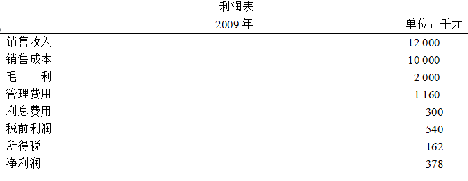 [综合题]A公司2009年度财务报表及其他主要资料如下: