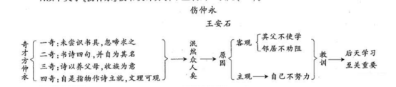 本题考査的是板书设计。教学板书,是帮助学生理解掌握教学内容的一种课堂教学的直观辅助手段。板书不仅能简明扼要地反映本课的教学内容和重点,展示教师讲授的流程,还能体现教师上课的重点,使学生加深对知识的理解,利于记录和记忆,便于课下巩固和练习。题目中的板书系统地梳理了《伤仲永》一文的主要内容,A、B、C三项表述均为此板书的优点,而D选项属于无中生有。板书设计类型多样,但本文属于综合式。所以答案选择D选项。
