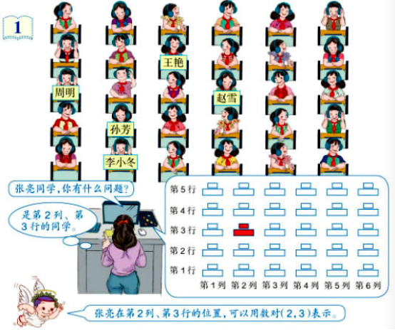 (2)数对(6,4)表示的是王乐同学的位置,你能指出哪个是王乐同学吗?