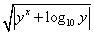 sqrt(fabs(pow(y,x)+log10(y)))