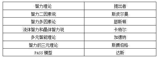几种主要的智力理论及其提出者如下表所示: