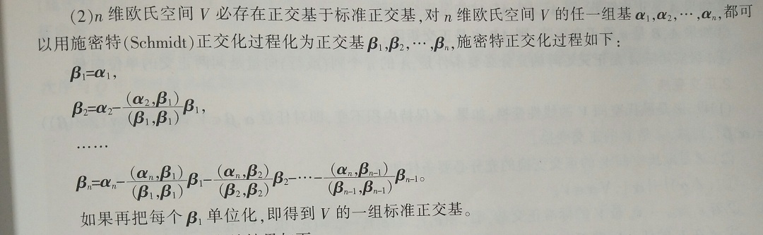 正交基的求法:首先给出欧式空间中的一组基,计算矩阵在这组基下对应的向量;其次使用Schmidt正交化过程将上述向量正交化,从而得到一组正交基。