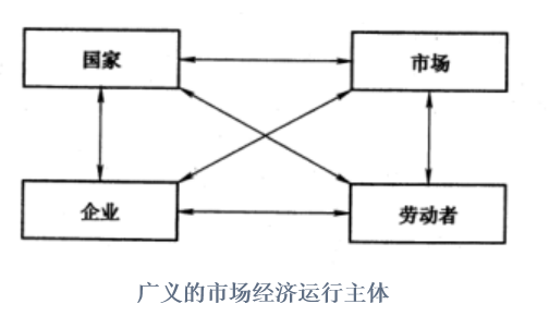 本题关键点为“广义”,广义的市场经济运行主体有四个。