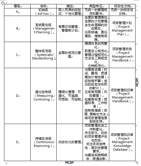 [单选题]神舟项目级组织项目管理成熟度模型的D级是()