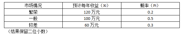 [综合题]环球工厂准备以500万元进行投资,根据市场预测,预计每年可获得的收益及其概率的资料如下表。