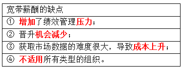 本题考查宽带薪酬的缺点,属于理解记忆型题目。